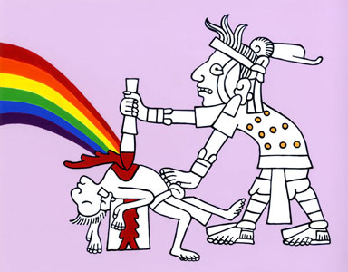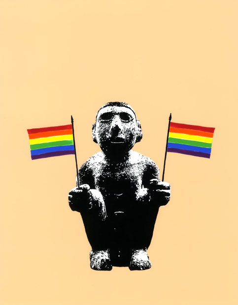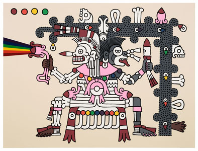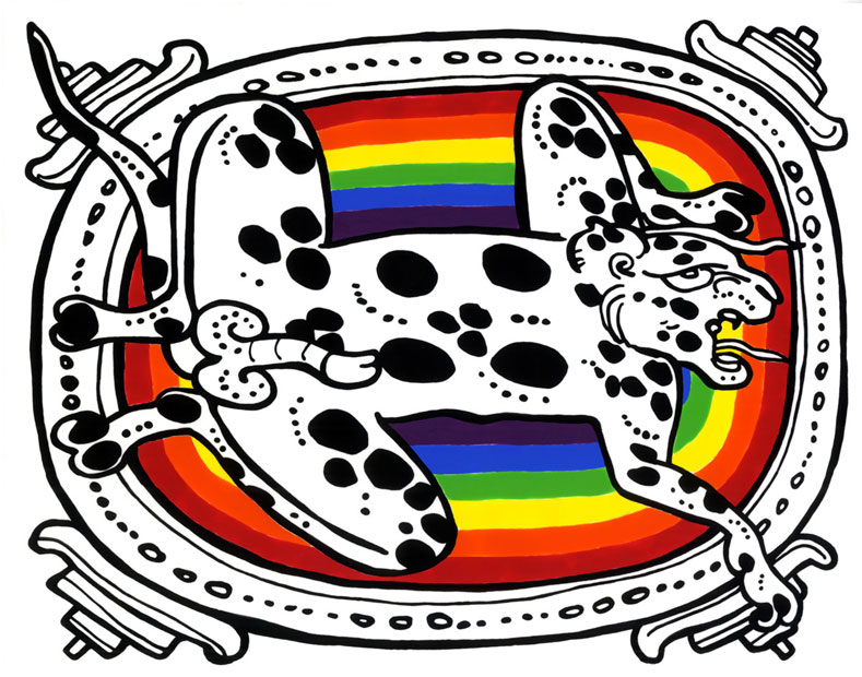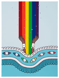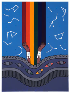 acrylic, latex, gold-leaf, and rhinestones on Mylar, 40 x 30 in. |