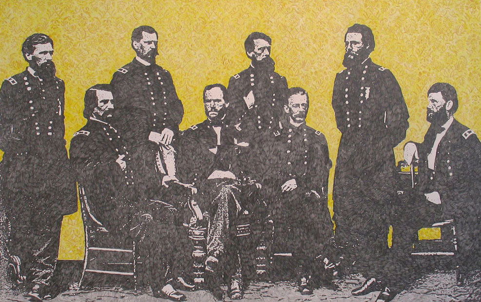 General Sherman and his Men, 2006, graphite and colored pencil on paper, 36 x 54 in. |