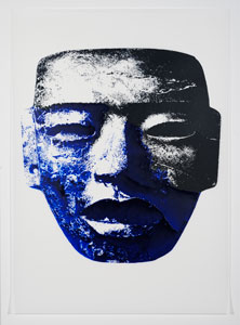 Aztec Mask (Ultramarine), 2014, hand-painted acrylic on Mylar, 50 x 36 in. |