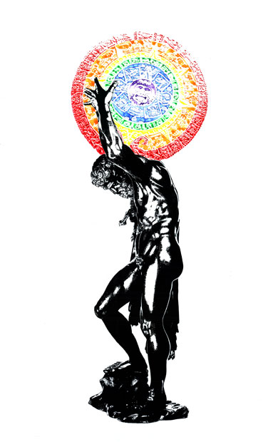 Hercules Holding the Sun and Rainbow, 2008, hand-painted acrylic on Mylar, 36 x 24 in.