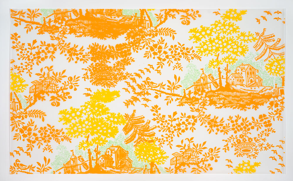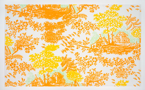 Toile Study (Yellow), 2013, hand-painted acrylic on Mylar, 36 x 60 in. |