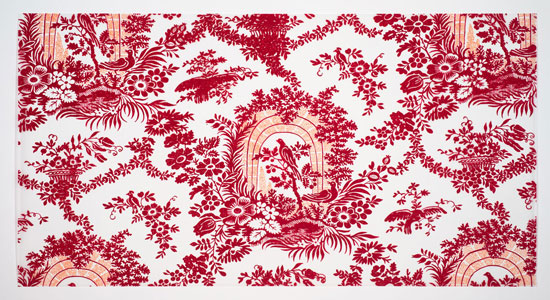 Toile Study (Red), 2012, hand-painted acrylic on Mylar, 42 x 72 in. |