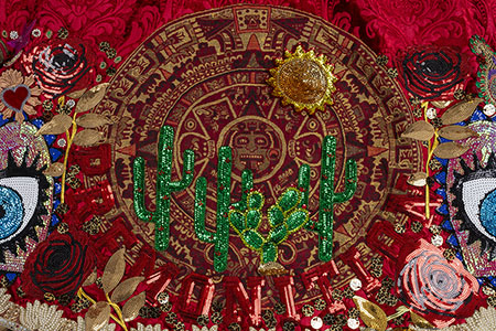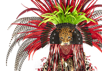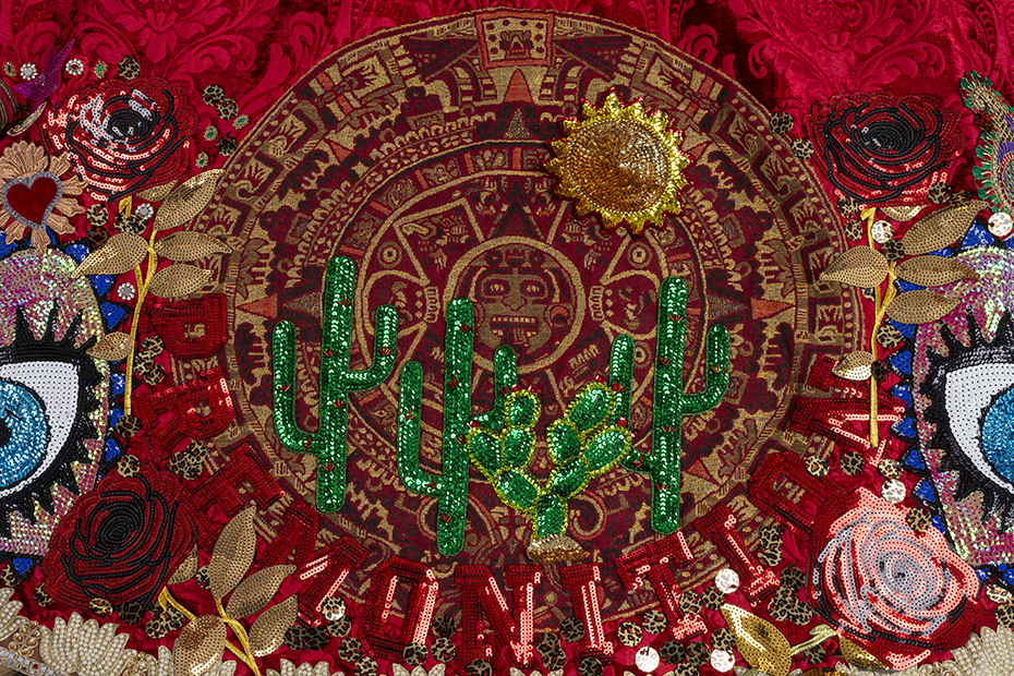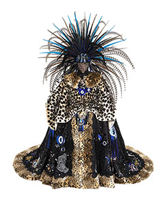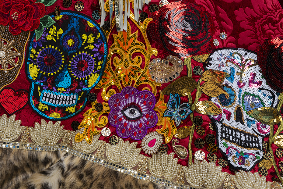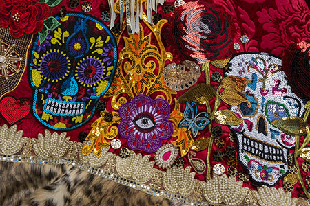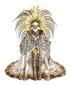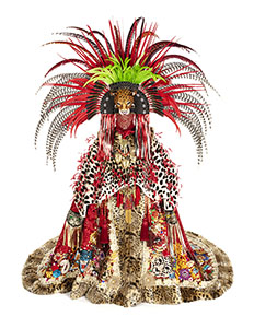 velvet, peau de soie, faux fur, leather, feathers, sequins, beaded trim, appliques, and rhinestones, approximately 115 x 72 x 120 inches. Photo by John Bentham. |